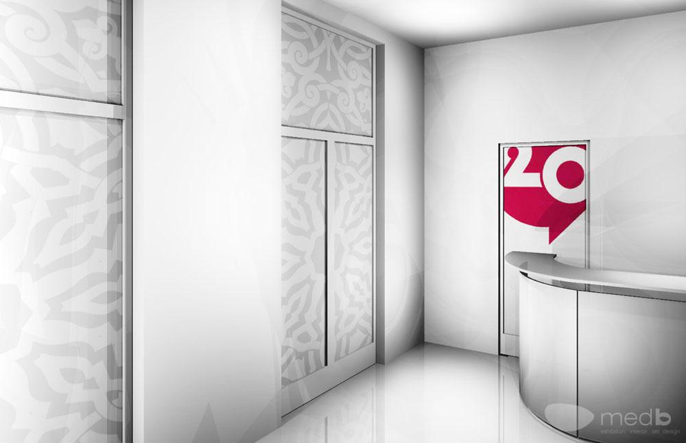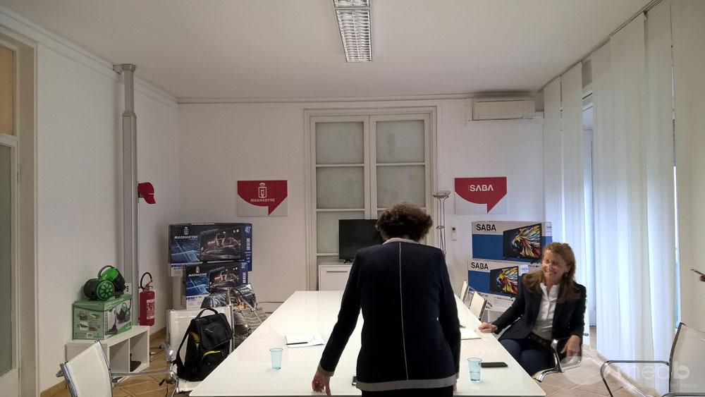 La committenza aveva bisogno di organizzare una sala riunioni con funzione di show room dei propri prodotti, televisori e piccoli elettrodomestici. L’idea mira ad unire la nuova immagine grafica, con il mood di solarità e pulizia visiva che già si respira negli uffici così come sono stati pensati e organizzati.