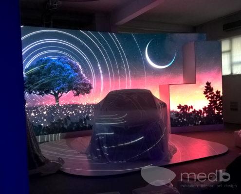 Studi e proposte scenografiche per la presentazione della nuova auto Ypsilon Mya, ricerca espressiva per ottenere, secondo il brief, uno spazio che prende e cambia forma grazie ad uno spettacolo di video mapping, guidato “narrativamente” dalla testimonial Kasia Smutniak.